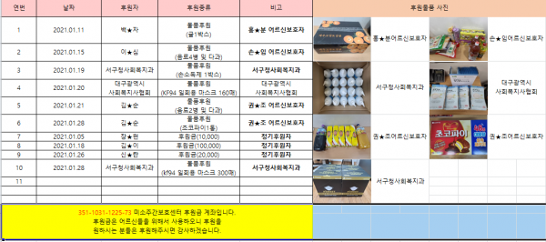 2021년 1월 미소주간보호&미소요양원 후원현황입니다.