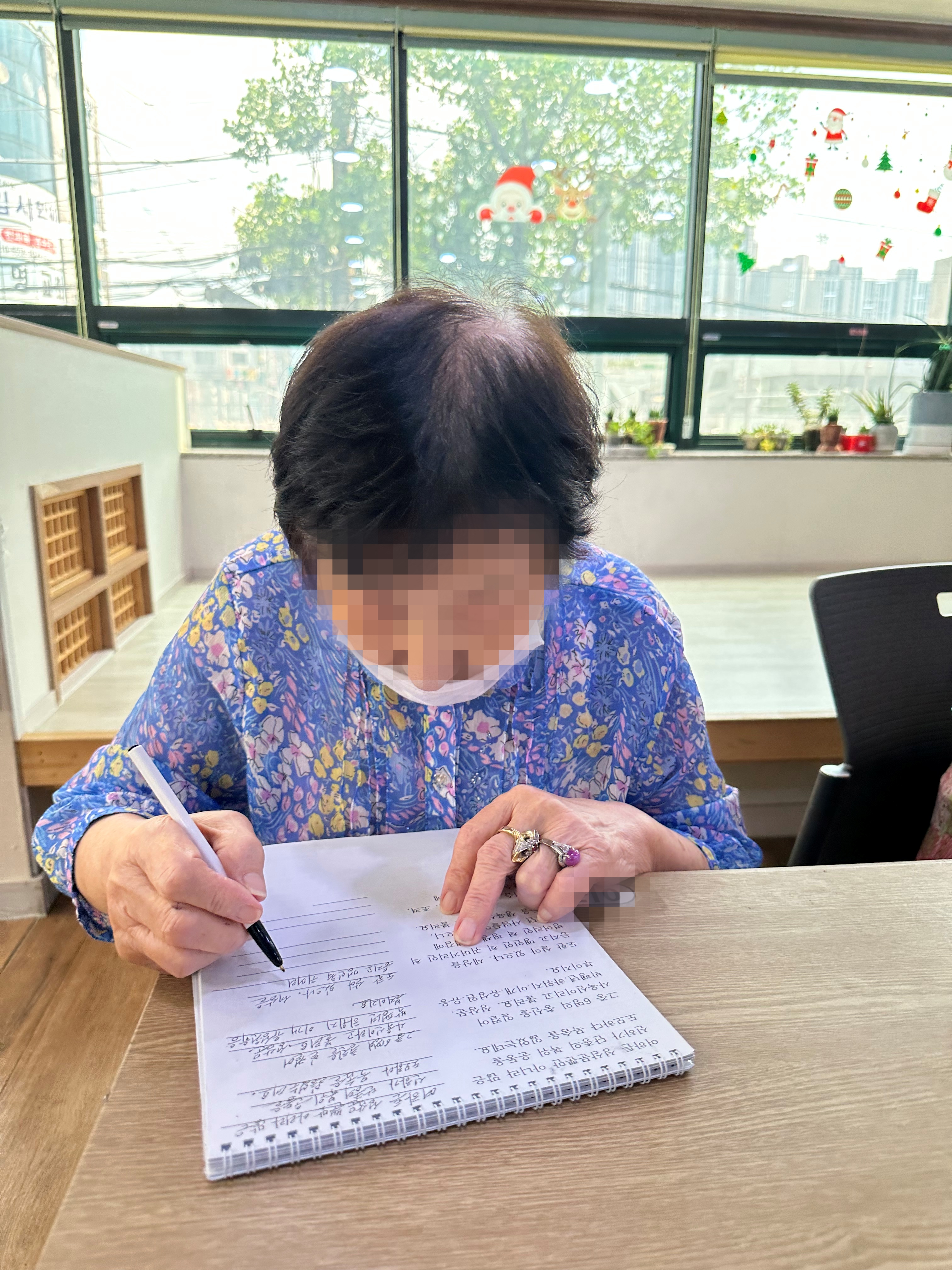대구주간보호센터 개인 활동북을 진행하고 계시는 어르신들의 모습