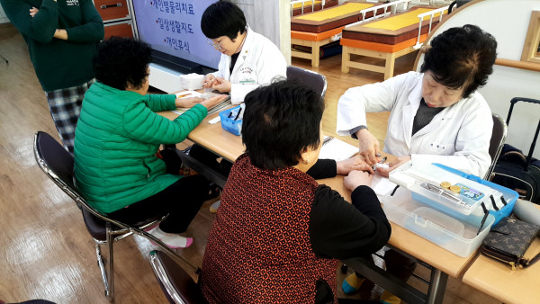 매월 1회 수지침 협회 한의사분이 직접오셔서
