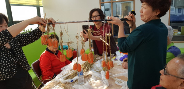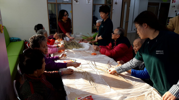 관련링크 본문 < 메주 만들기 >장 담그는 날의 추억을 이야기하고 과거를 회상한다. 짚으로 새끼 꼬기를 하고 찱흙으로 메주모양을 만들어서 짚으로 만든 시끼에 메주를 고정해서 완성한다. 서로의 작품을 보면서 이야기를 나눈다.